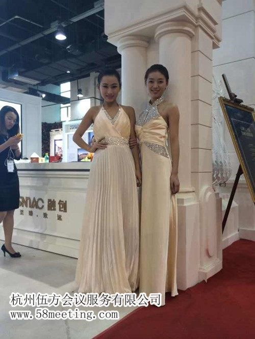 兩位靚麗的模特,身穿禮服,以自身甜美的微笑,給人舒心的感覺(jué)。