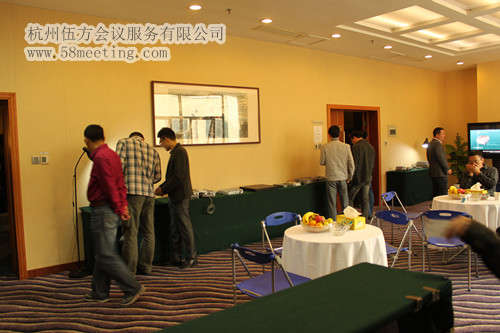 會(huì)議場(chǎng)地已經(jīng)布置好了,現(xiàn)場(chǎng)擺好了茶歇可以供參會(huì)人員交流之后可以使用。