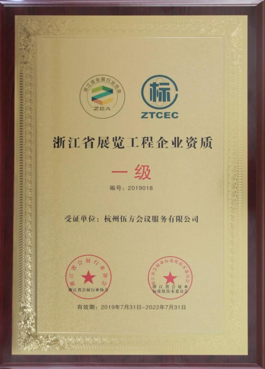 伍方資訊丨恭喜伍方通過評審成功獲得浙江省展覽工程企業(yè)資質(zhì)一級證書