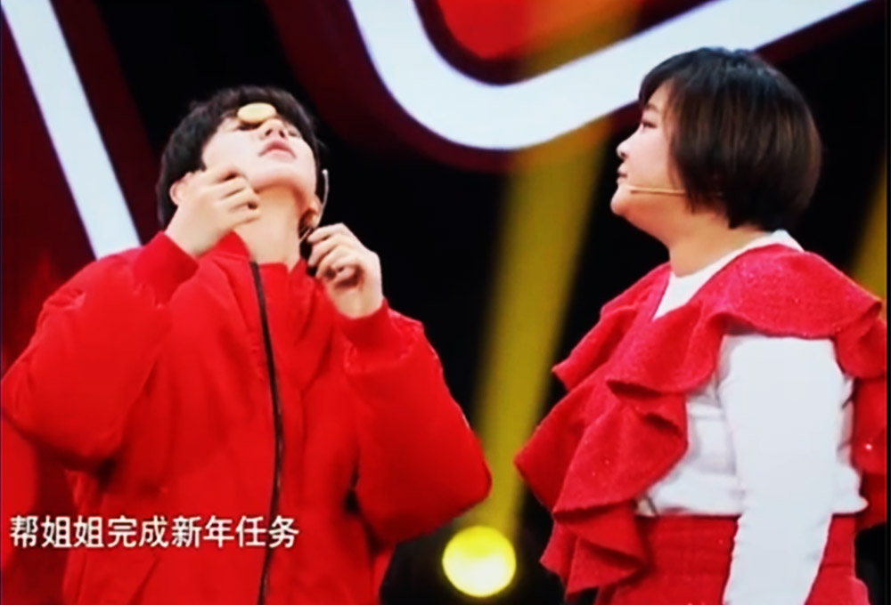 參與選手身披春聯(lián)道具,跟隨著音樂圍繞著道具行走,音樂聲321結(jié)束,站在道具上,獎頭部和道具全部露出定格拍照,即為勝利。