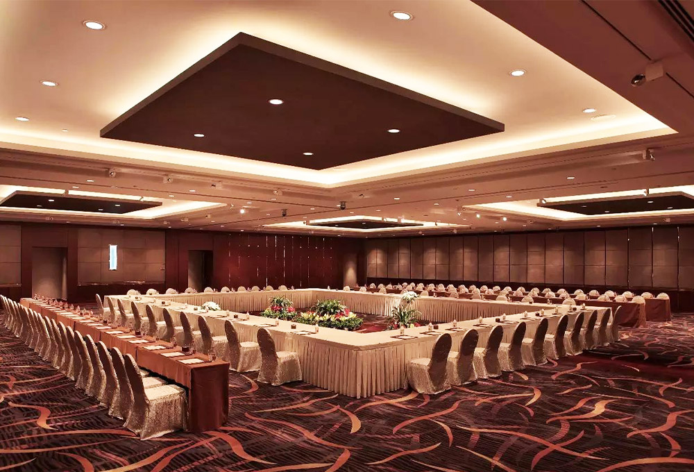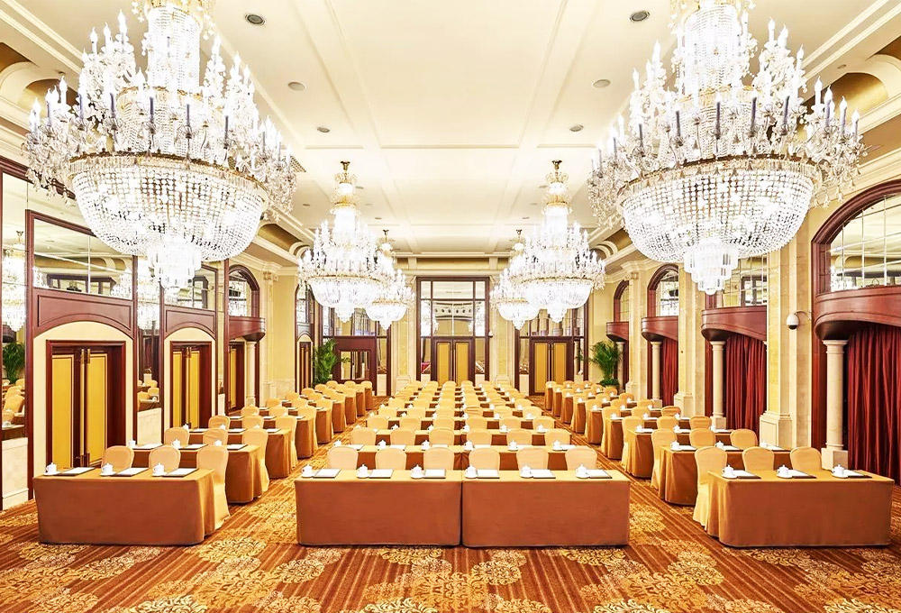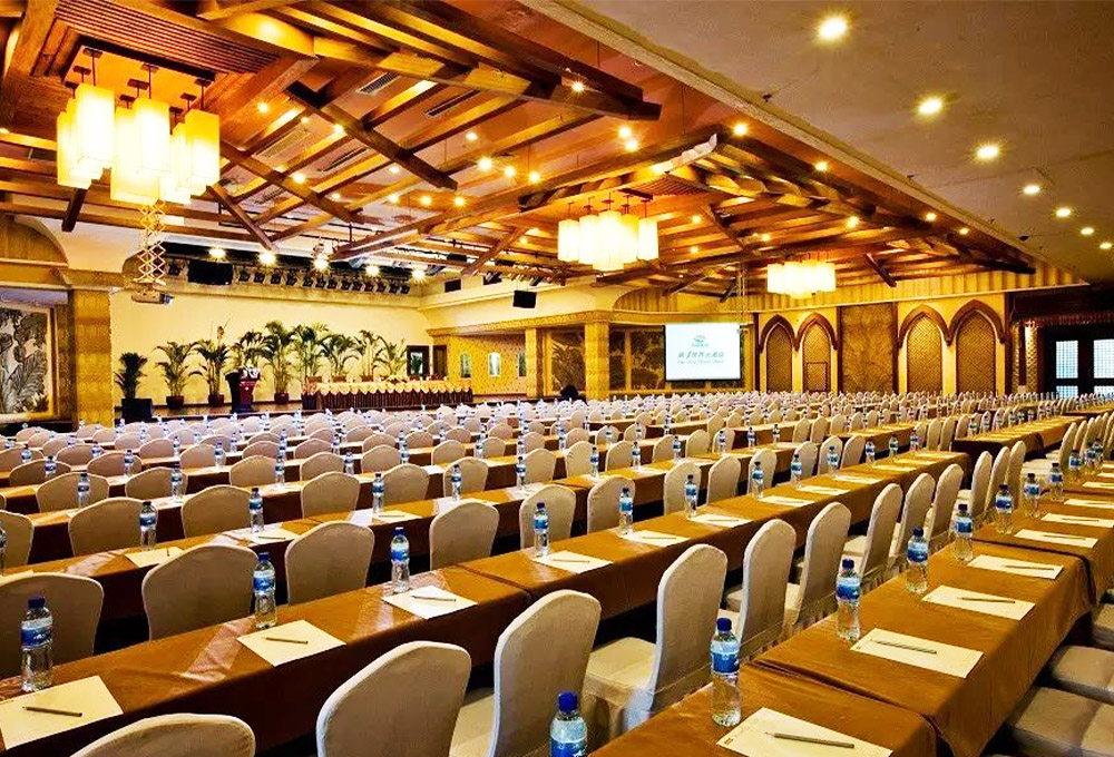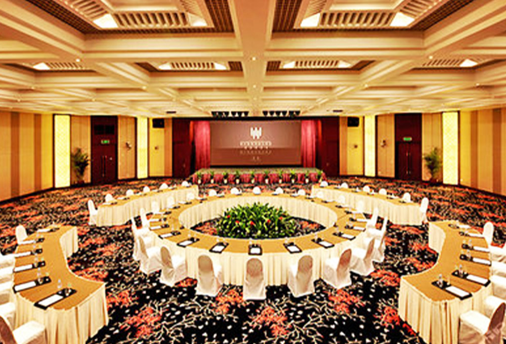 酒店擁有1780平方米的無(wú)柱式超大宴會(huì)廳、可容納千人的劇院式報(bào)告廳、城中獨(dú)有的環(huán)形峰會(huì)式會(huì)議廳、新聞發(fā)布廳和20多個(gè)不同規(guī)模的中小型多功能廳,為各種規(guī)格會(huì)議以及婚宴提供多樣化選擇。